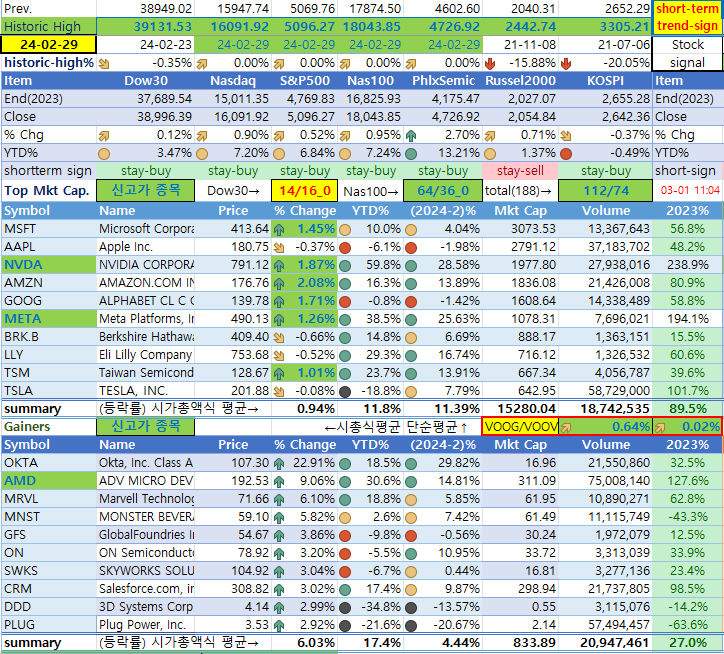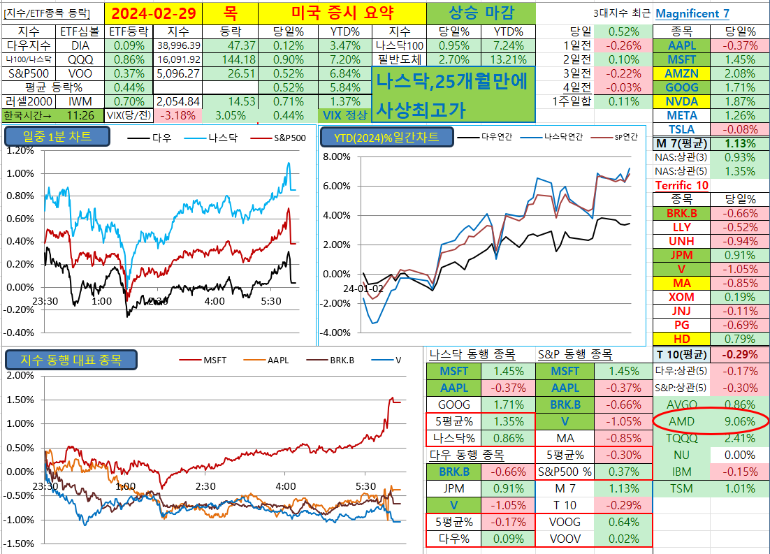 이날 상승을 반도체(+2.7%, AMD/+9.06%)가 주도하면서 나스닥이 2021.11.19일의 기록(16057.44)을 넘는 사상최고가 기록(16091.92)