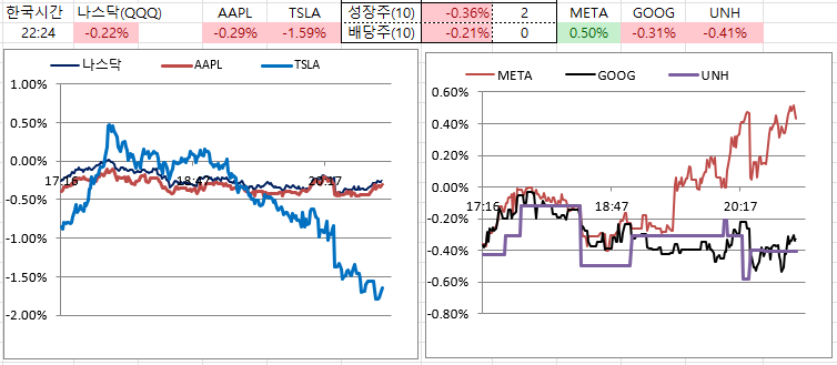 미국시장 개장 6분 전 현재, 미주 실시간 차트로 보면