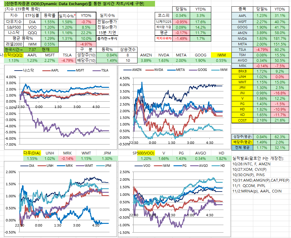 테슬라만 하더라도 10/18일 실적 발표 때만 하더라도 지수의 발목을 잡아 3일 내리 하락을 이끌었다면 이날은 지수 영향이 제한적이었다는 점에서 시장에 대한 기대가 있습니다.