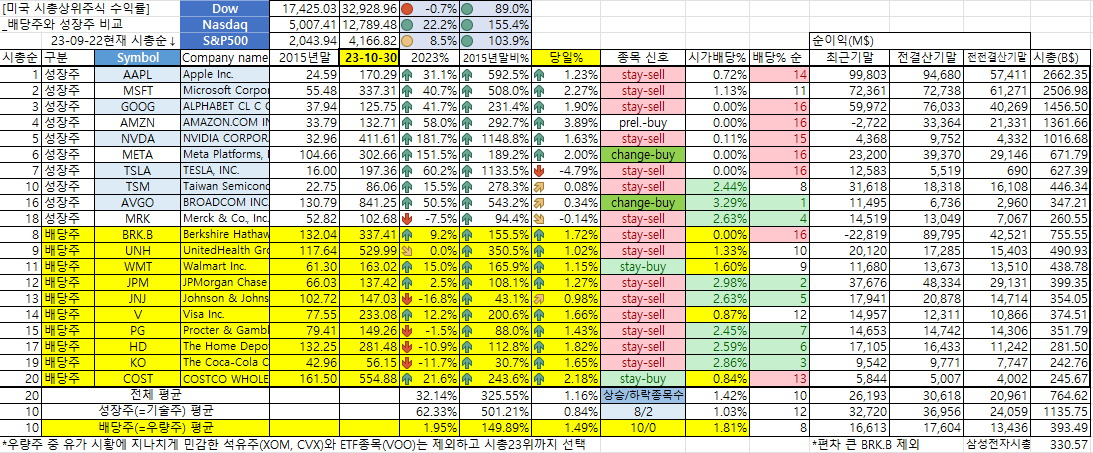 성장주/배당주로 구분해서 보면, 성장주보다는 배당주가 강세를 보이면서 다우지수의 강세를 견인한 셈입니다.
