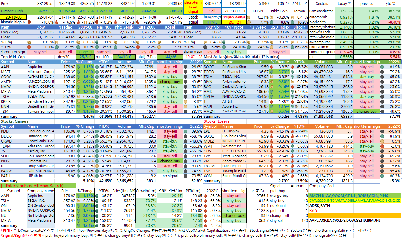 아래 현재 시각(한국 시간 10/7일 01시 02분)의 미국시장 종합상황판을 먼저 참고하시기 바랍니다.