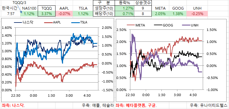 성장주와 배당주의 등락이 각각 9:1, 8:2로 상승이 압도적입니다.