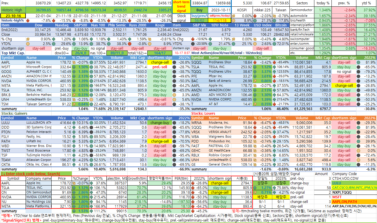 이날 미국시장을 종합적으로 보여주는 종합상황판입니다.