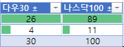 아래 이날의 다우30 종목과 나스닥100 종목의 등락 현황입니다.