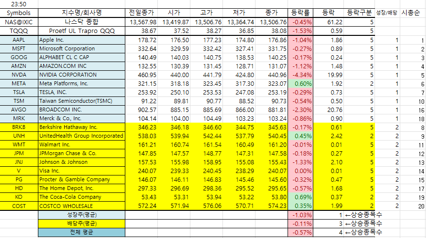 실시간 차트는 22:30분부터 돌아가는데 미장 개장전에 돌아올 줄 알고 컴터를 끄고 다녀왔더니 시간을 놓쳤군요.(컴터를 켜고 엑셀 파일을 켜 놓고 외출했어야 했는데ㅠㅠ)